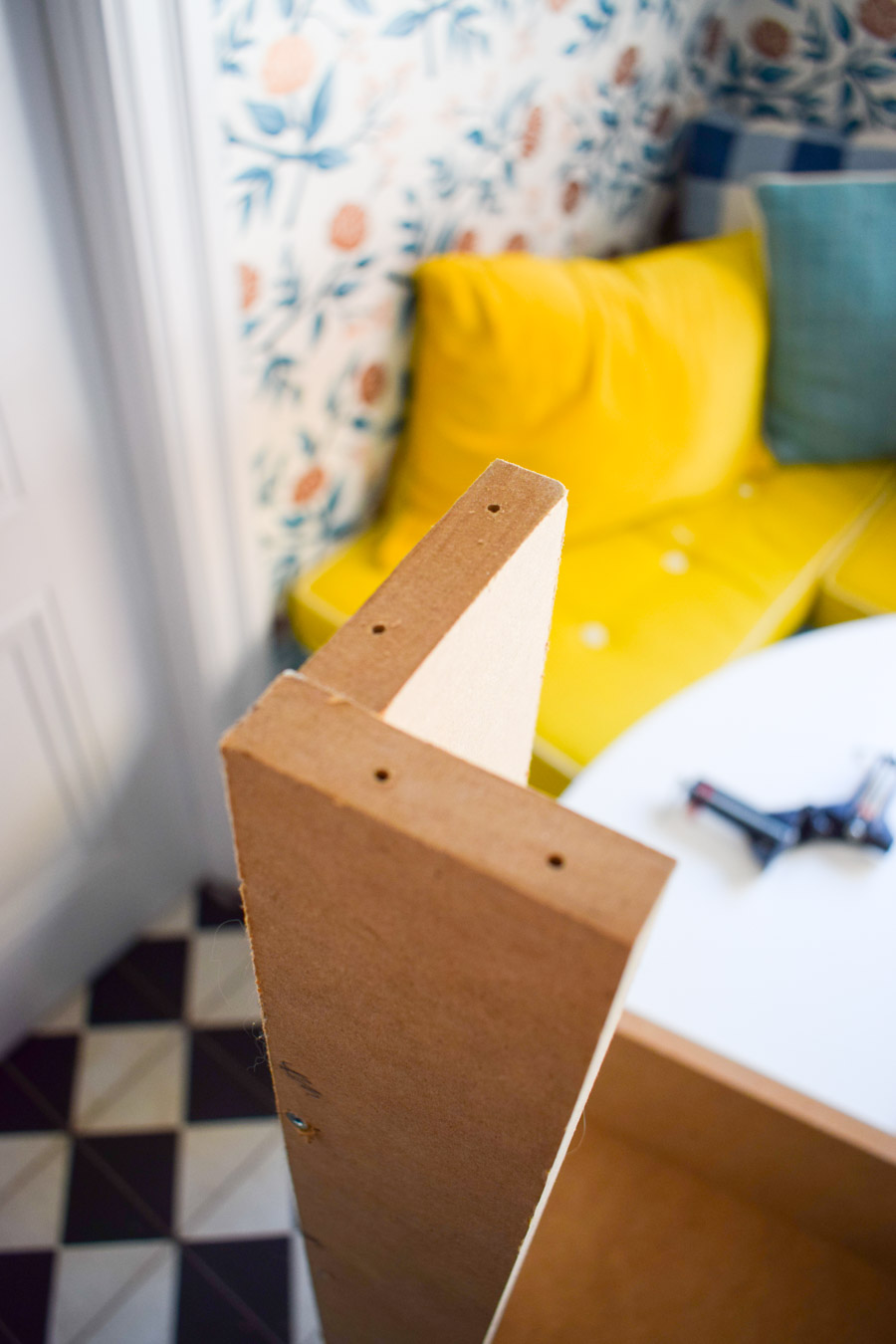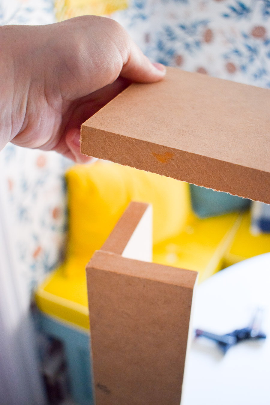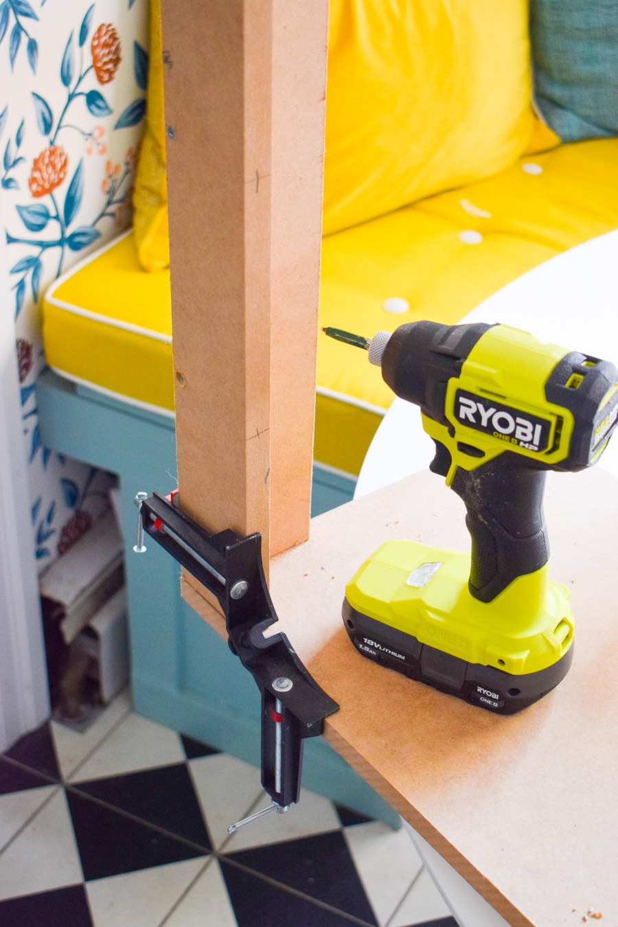 I also used 90* clamps, a regular clamp, wood glue, wood screws, and the Ryobi 18V One+ HP Compact Brushless Drill + Impact Combo Kit. They’ve got a whole compact set of tools (launched this summer) and if you’re in the market for something smaller but equally powerful, this range is for you.