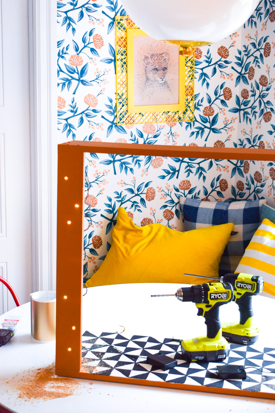 I wanted to get a head start on gifting this year, and since Dan and I are trying to make more of June’s toys, a DIY hand puppet theater was right up my alley. I used the new brushless compact series from Ryobi to get the job done!