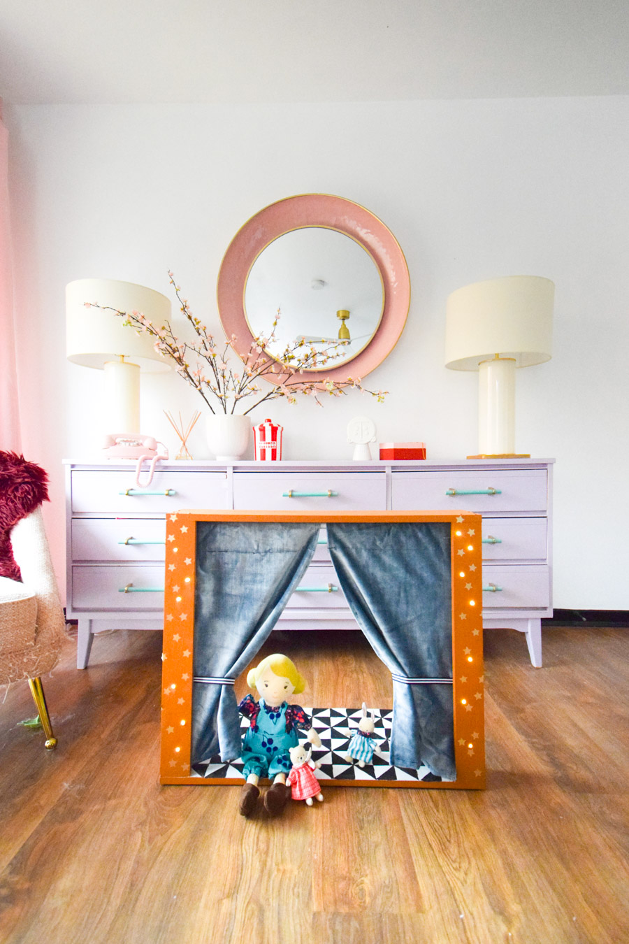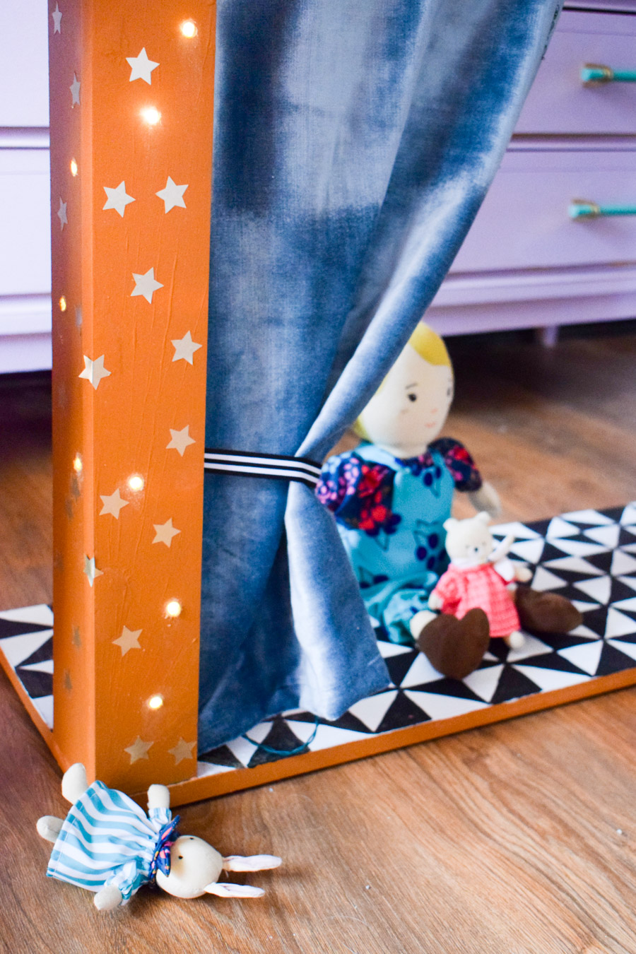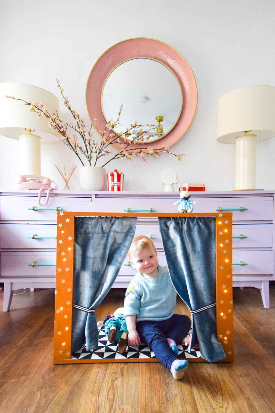 Sure, she could use her dolls or hand puppets, but it seems like more fun to climb inside and be the centre of the show!