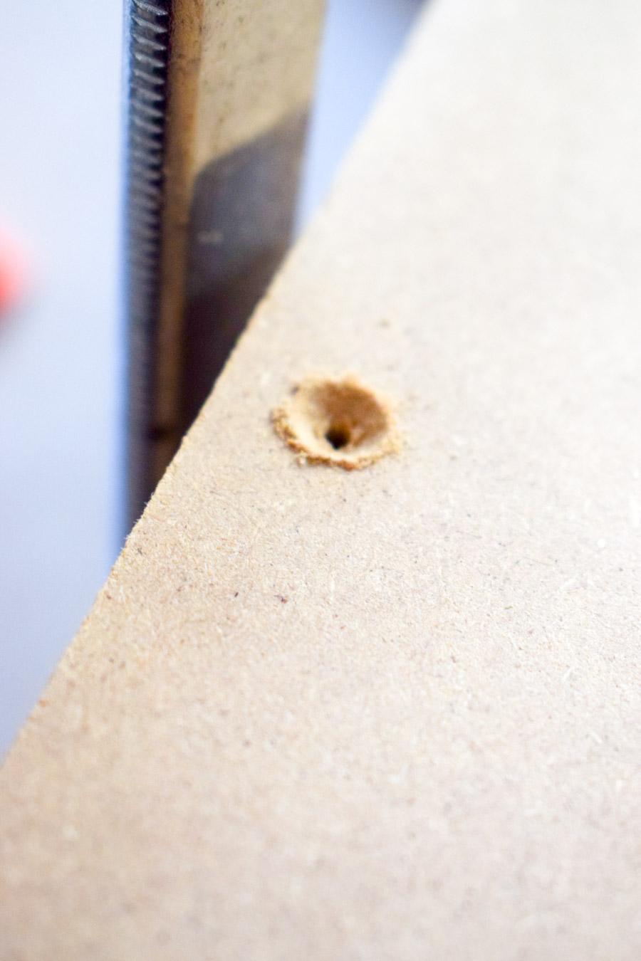 Like with the MDF, I pre-drilled a hole for the screw – trust me, it saves time and splintering.
